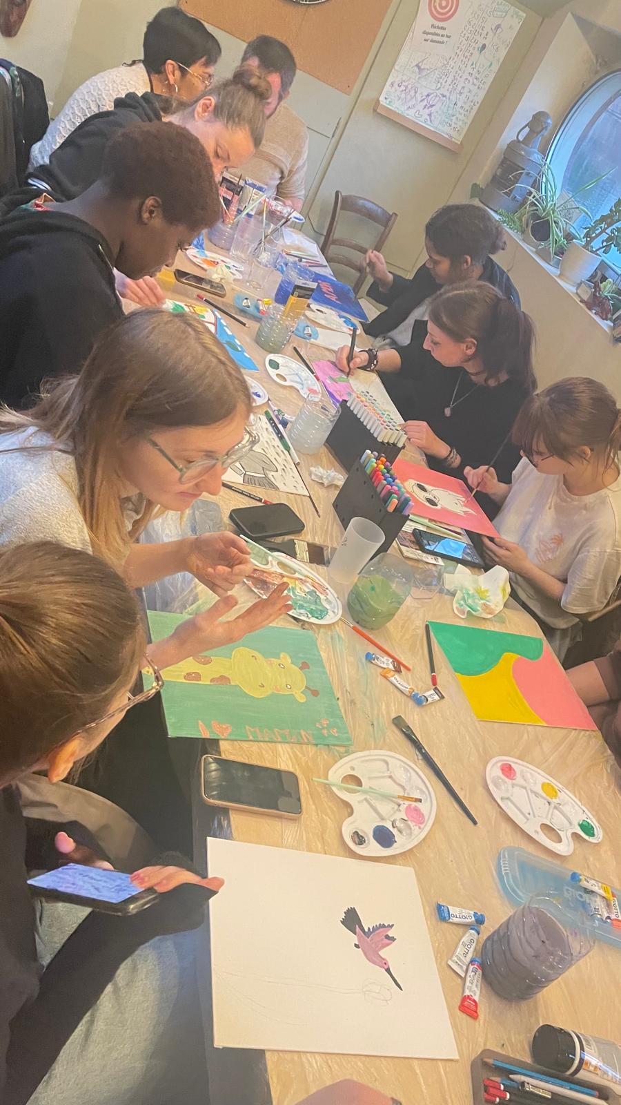 Tout en peignant, dessinant, créant, collant, les jeunes ont pu se relaxer, parler de ce qu’ils souhaitaient, échanger sur leurs émotions.